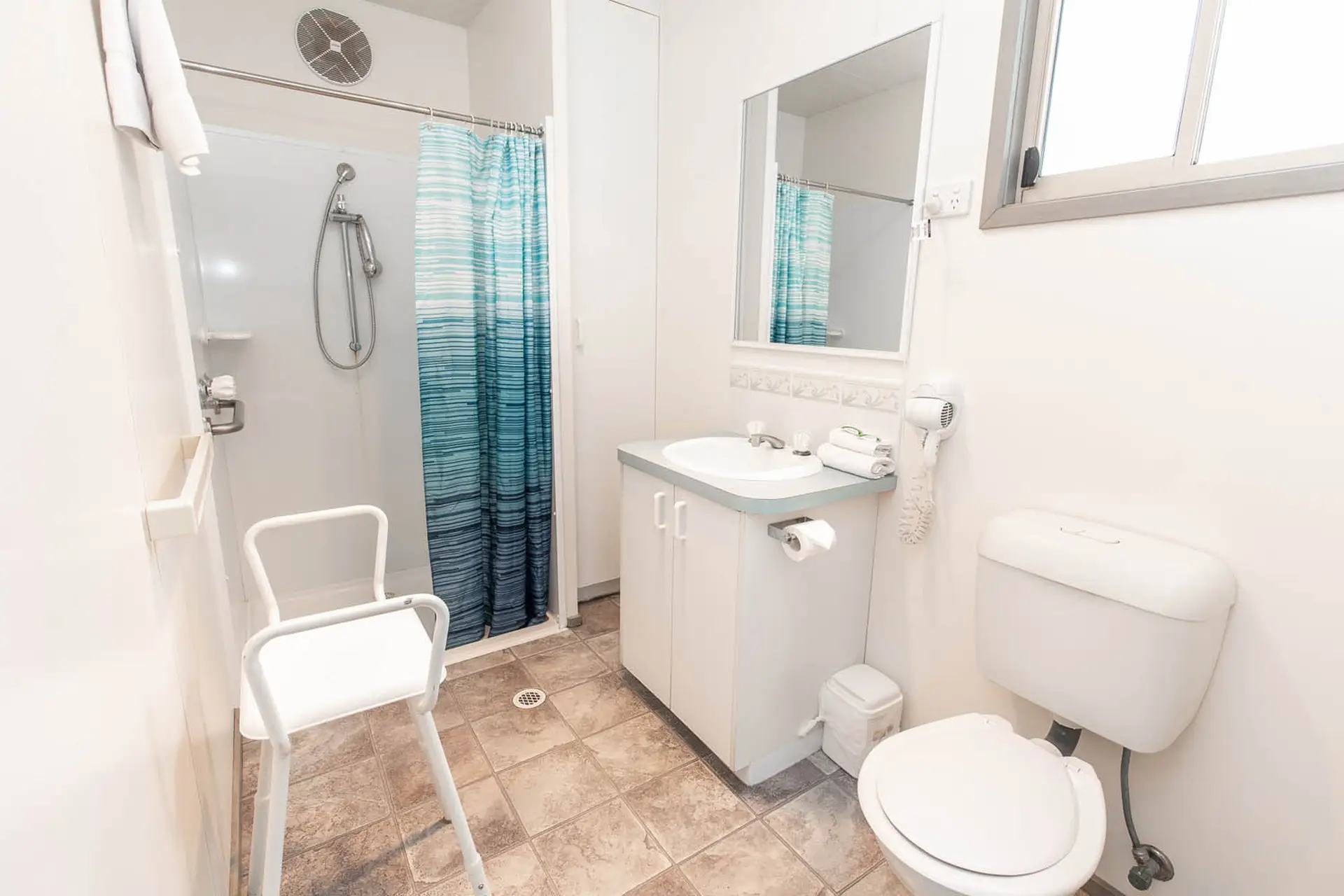 This one-bedroom cabin sleeps two guests in a queen bed and offers a bright, modern space with all the essentials. The open-plan layout includes a full kitchen with gas cooktop, electric oven, microwave, and full-size fridge, plus a dining area, lounge, TV, and reverse-cycle air conditioning. A great choice for couples or solo travellers seeking a quiet, comfortable stay.
