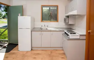 Experience a holiday where every member of the family, including your pets, feels right at home. This spacious two-bedroom cabin accommodates up to five guests with a queen bed and tri-bunk, and offers modern comforts such as reverse cycle air conditioning, a TV, and a fully equipped kitchenette with a microwave, cooktop, and full-size fridge. Blending comfort with inclusivity, our pet-friendly cabins create the perfect setting for a relaxed and memorable stay