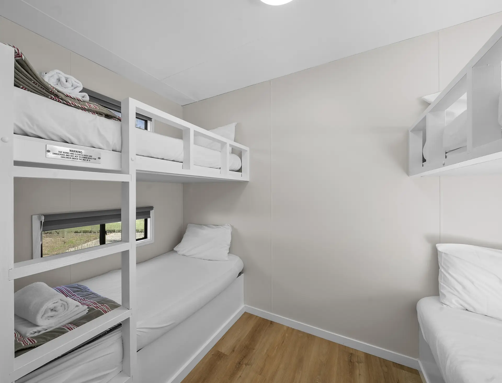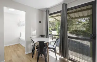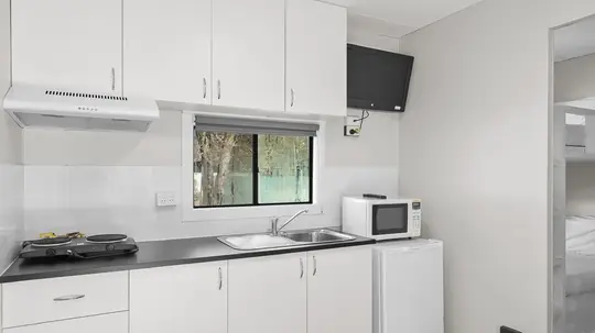 Great for families, this cabin sleeps up to six with a double bed and two sets of bunk beds. It includes reverse cycle air conditioning, a TV, and a kitchenette with electric cooktop, microwave, and bar fridge. A practical and comfortable base for your stay in Shepparton. Note: Bunk beds are best suited to children and may not comfortably accommodate adults.