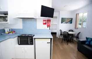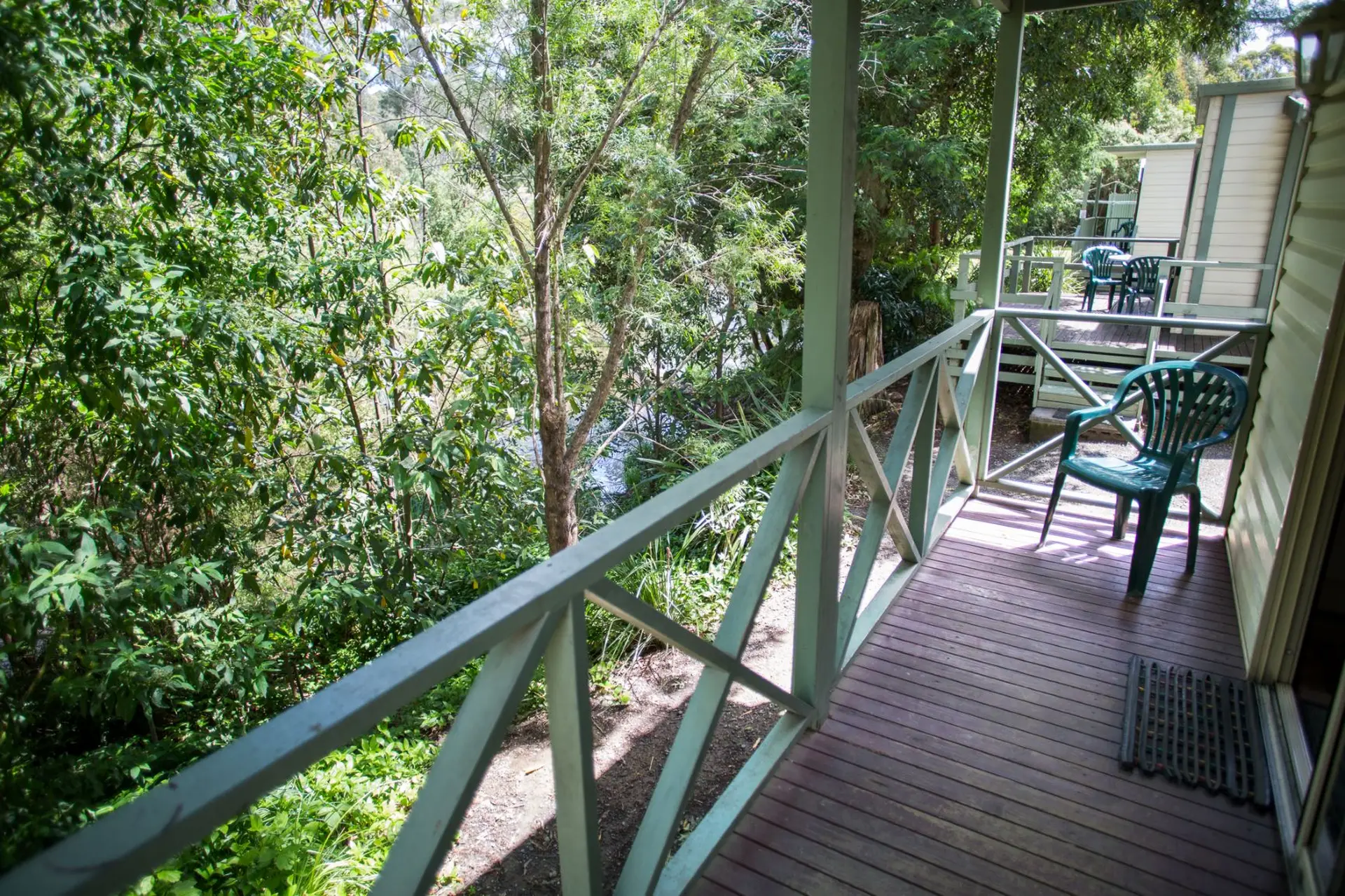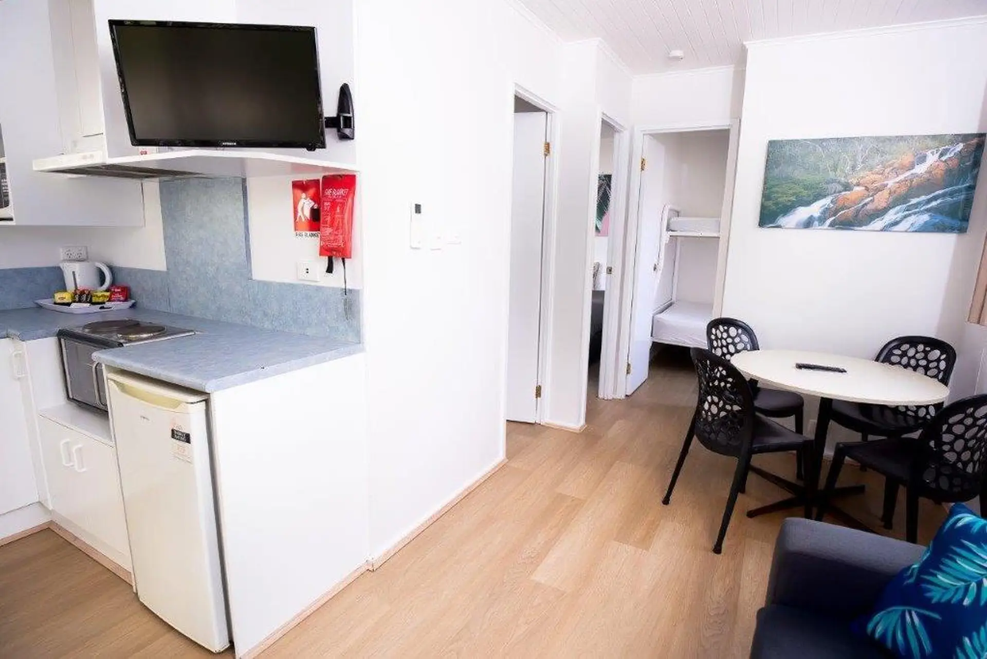 Enjoy river views and relaxed comfort in this two-bedroom cabin, perfect for families or small groups. Sleeping up to 5 guests, it features a double bed in one room and a single-over-double bunk in the other. The open-plan living area includes a sofa, dining table, TV, and air-conditioning for year-round comfort. A handy kitchenette is equipped with an electric stovetop and oven, microwave, and bar fridge - ideal for preparing simple meals. Step outside to your private deck with outdoor setting and take in the fresh river air. All linen is provided.