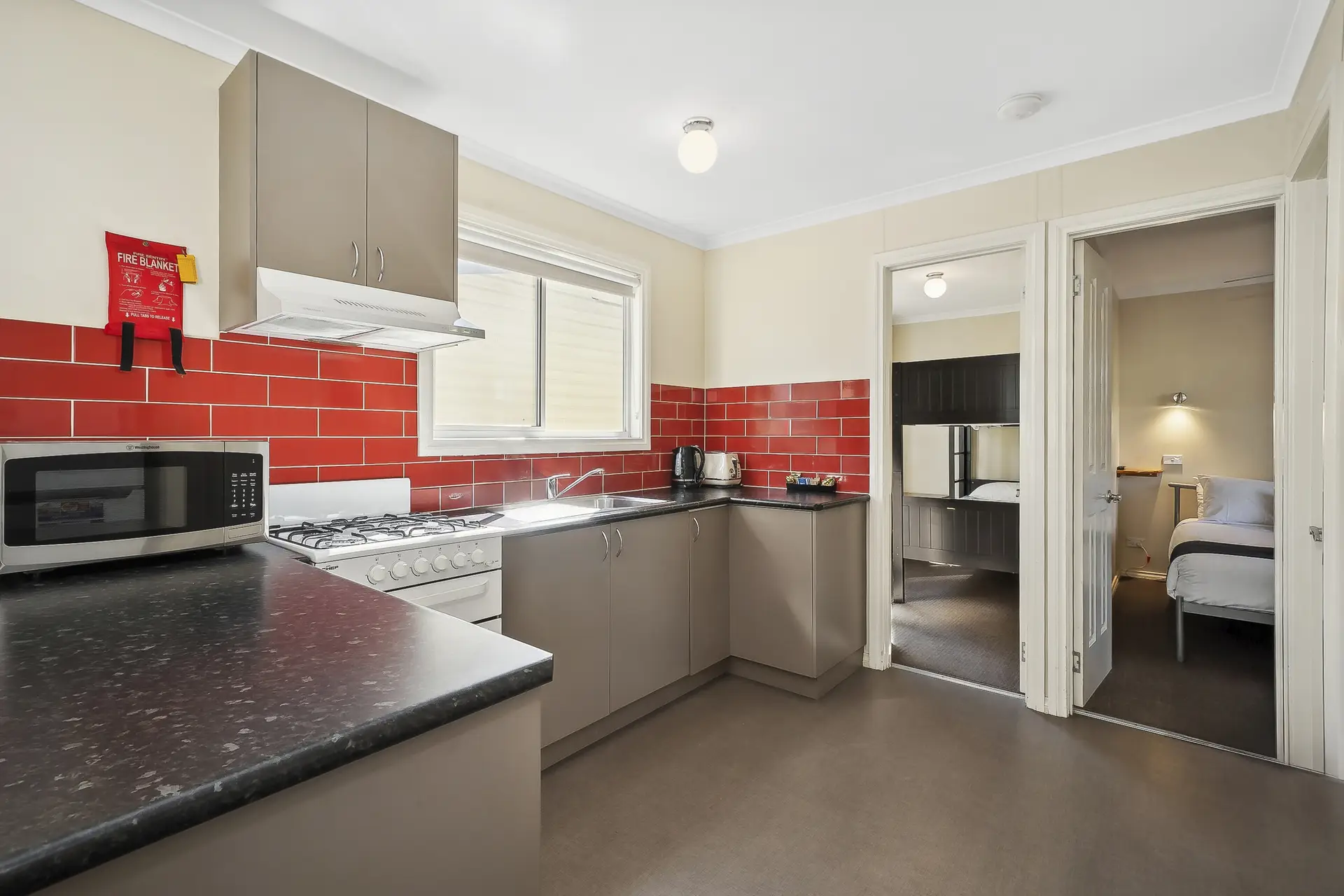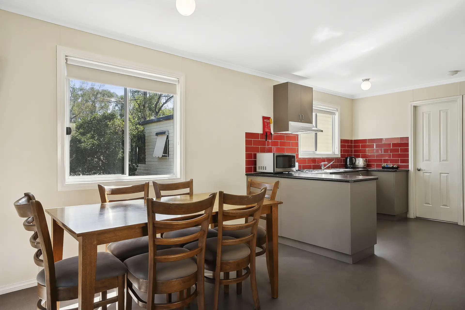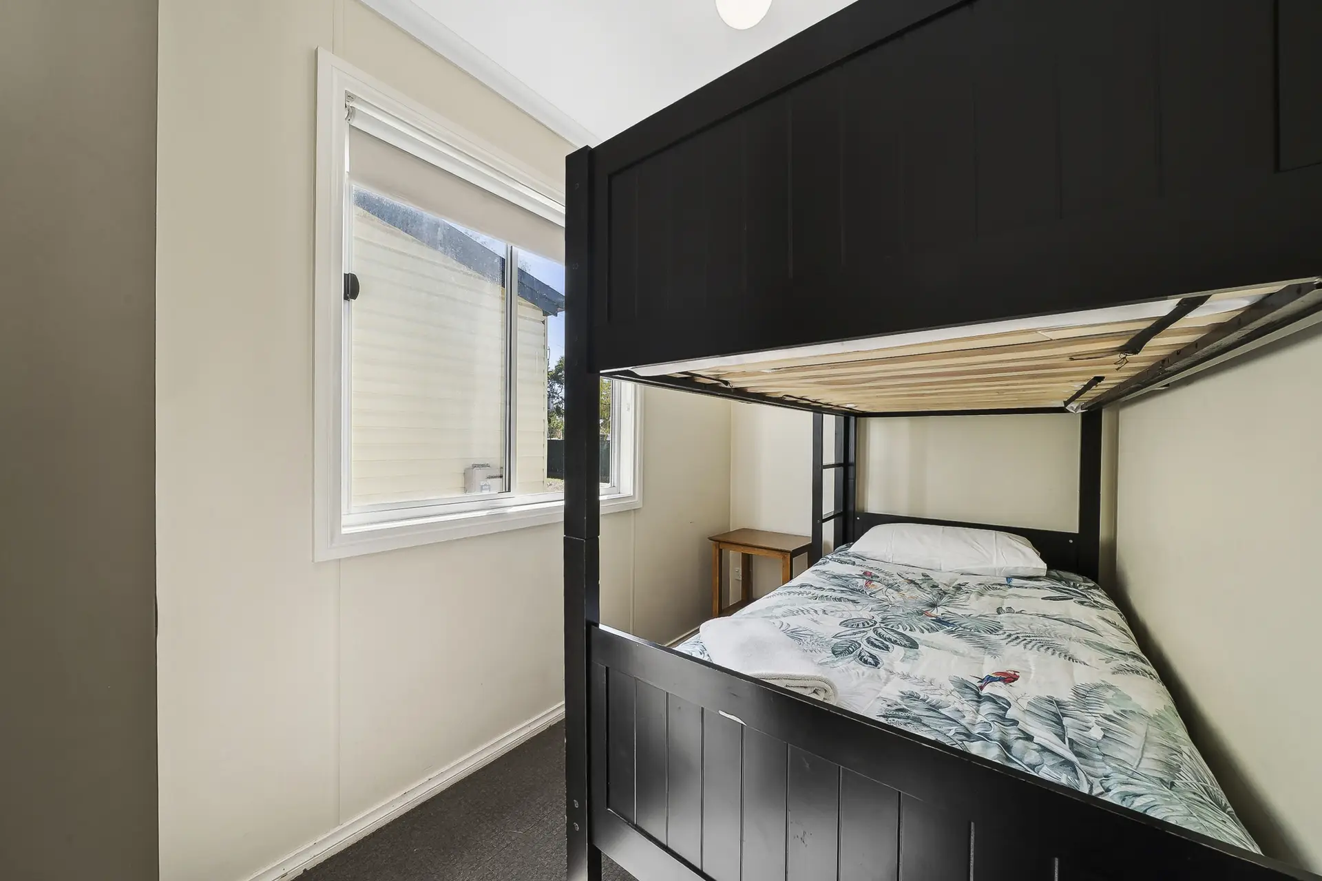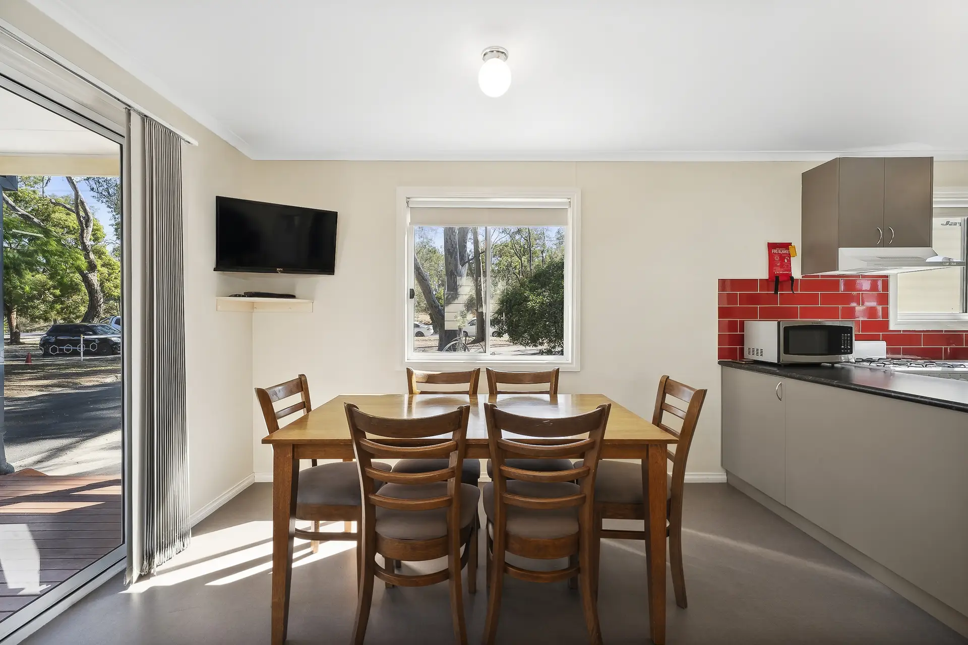 Steps from the pool, this bright two-bedroom villa sleeps up to four with a queen bed and single bunks. The full kitchen and spacious living area with leather lounges, dining table, and TV/DVD offer all the comforts of home. A private bathroom, separate toilet, and air conditioning ensure convenience. Relax on the large verandah with a six-seat outdoor setting overlooking the pool—perfect for family downtime.