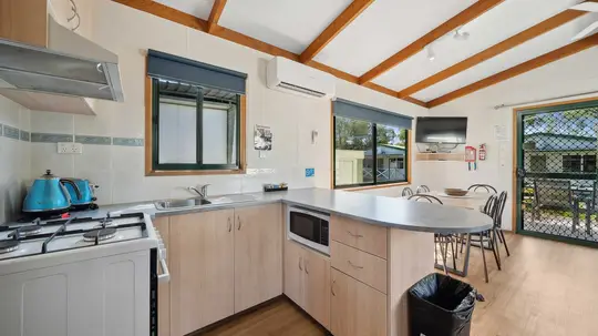 Perfect for family escapes, this two-bedroom villa sleeps up to six with a queen bed and two sets of single bunks. Enjoy a full kitchen with gas oven, stovetop, and microwave, plus a cosy living area with TV and split system air conditioning. Linen is supplied, with the main bed made on arrival—an ideal choice for a relaxed and affordable stay.