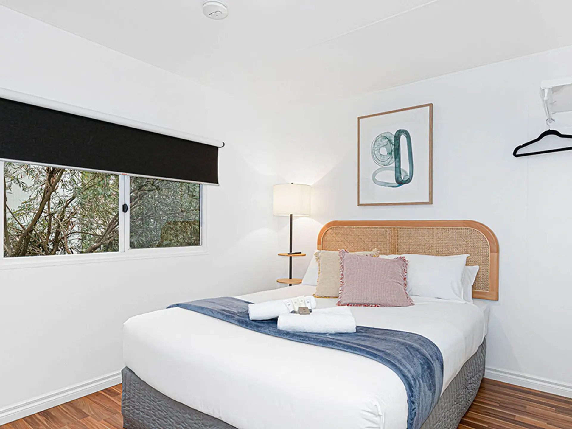 This self-contained studio accommodates two guests in a double bed and includes a private ensuite bathroom. The kitchenette is equipped with a gas stovetop, microwave, and bar fridge—ideal for preparing light meals. A split-system air conditioner ensures year-round comfort, and the outdoor area features a dining set. Please note: Room amenities may vary depending on the specific inventory. If you have specific requirements, we recommend contacting the park directly to confirm availability.