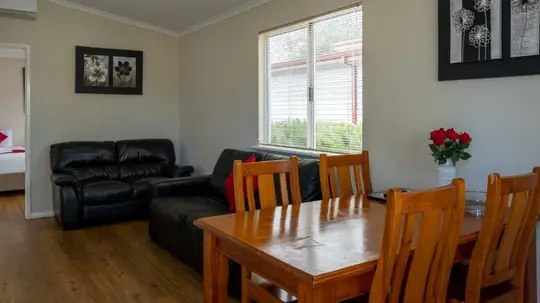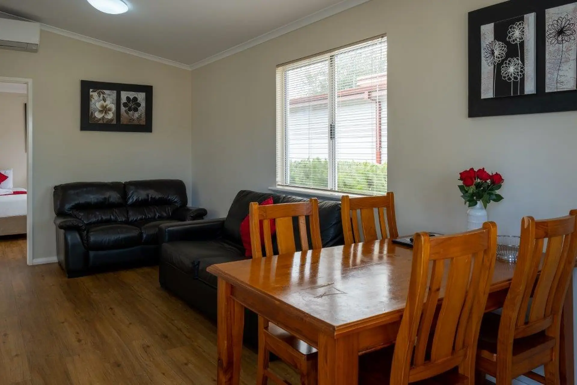 This spacious two-bedroom villa is ideal for families or groups, comfortably accommodating up to six guests with a queen bed, two single beds, and a sofa bed. It features air conditioning, a fully equipped kitchen with an oven and fridge/freezer, and a generous lounge area with a dining space. Step out onto the private deck with outdoor seating and enjoy access to park amenities and complimentary Wi-Fi—perfect for extended stays.