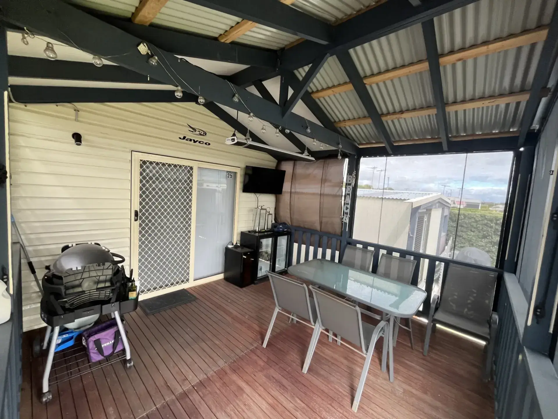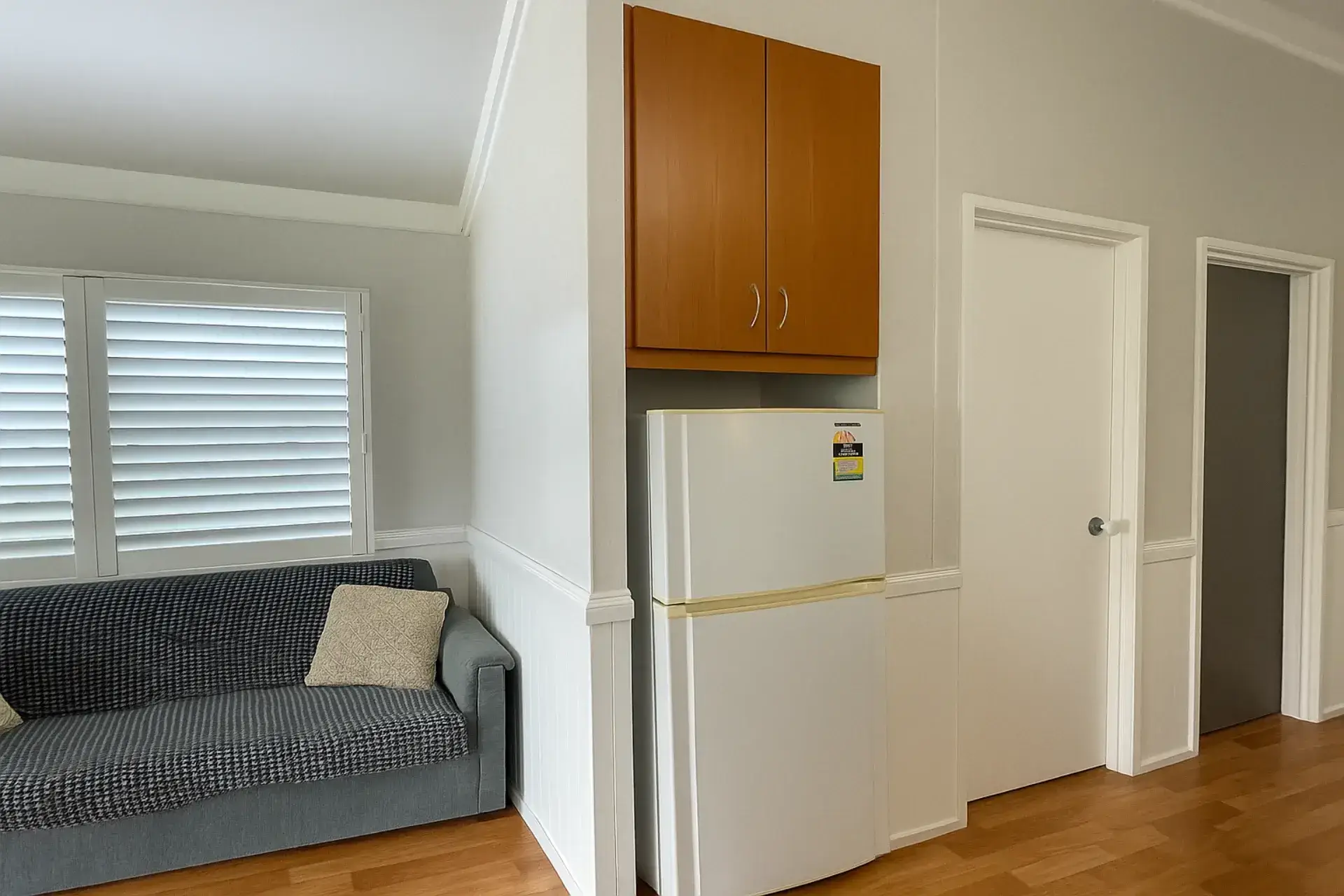 Step into a beautifully modern cabin that blends comfort, style, and a touch of coastal indulgence. With two well-designed bedrooms, a sleek kitchen, and a generous front verandah, this retreat sets the scene for relaxed weekends and long summer stays. Everything feels fresh, calm, and wonderfully low-maintenance — a perfect match for anyone wanting lifestyle over labour.