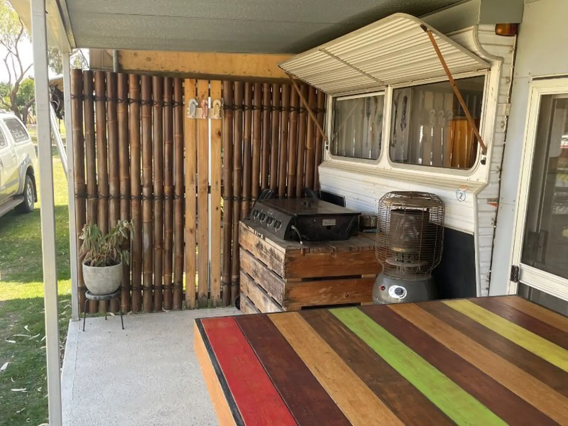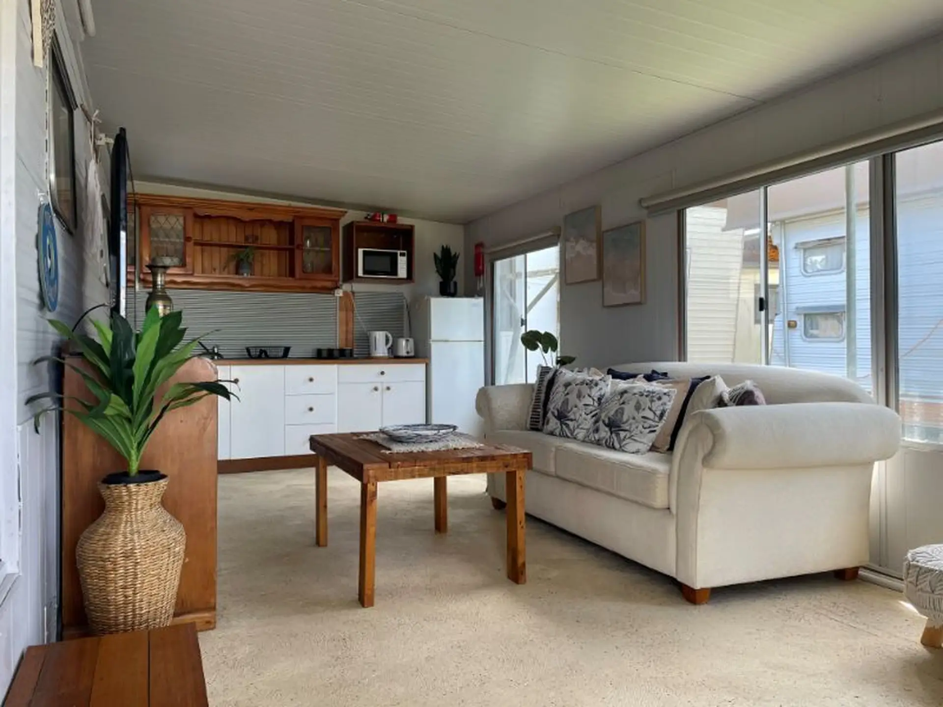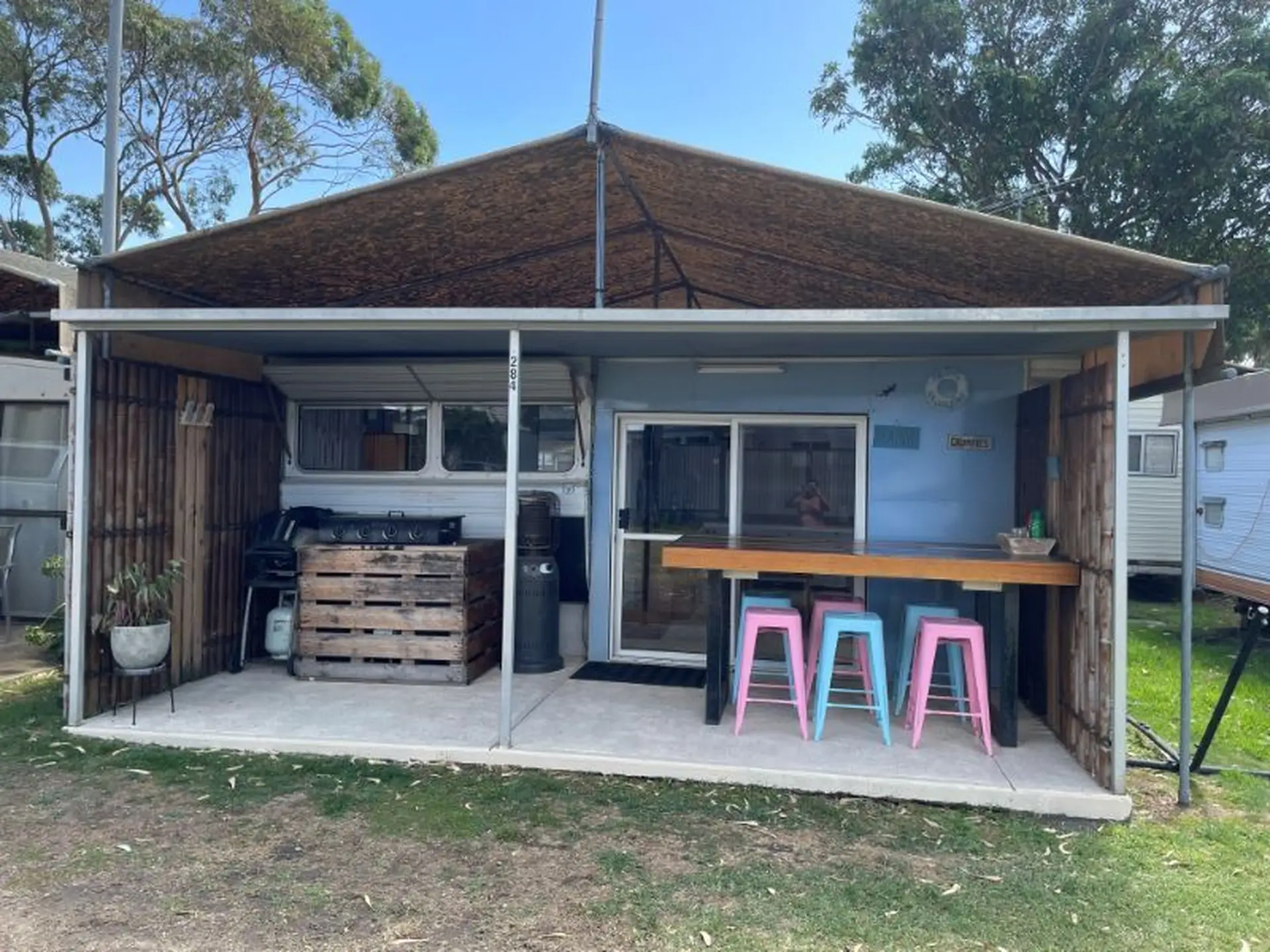 Effortless holiday living featuring stylish new kitchen with modern cabinetry and timber bench tops, Polished floorboards in van & speckled concrete floors in annex, 2 bedrooms comfortably sleeps up to 7 people. The light filled open plan living and dining area with outdoor dining setup including Weber Q, outdoor heater and built in BBQ makes cooking a breeze. Nothing to do just walk in and enjoy! Whether you’re seeking seaside serenity or a family friendly base this turnkey holiday site is ready for you. Enquire now – don’t miss out on this slice of paradise!
