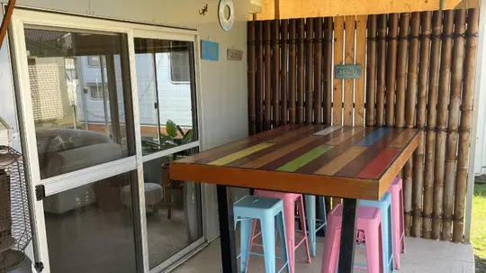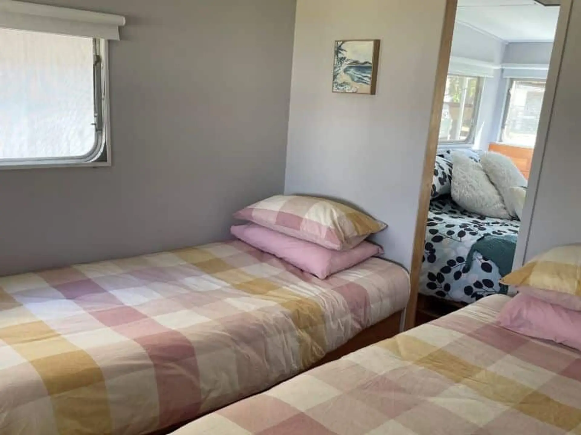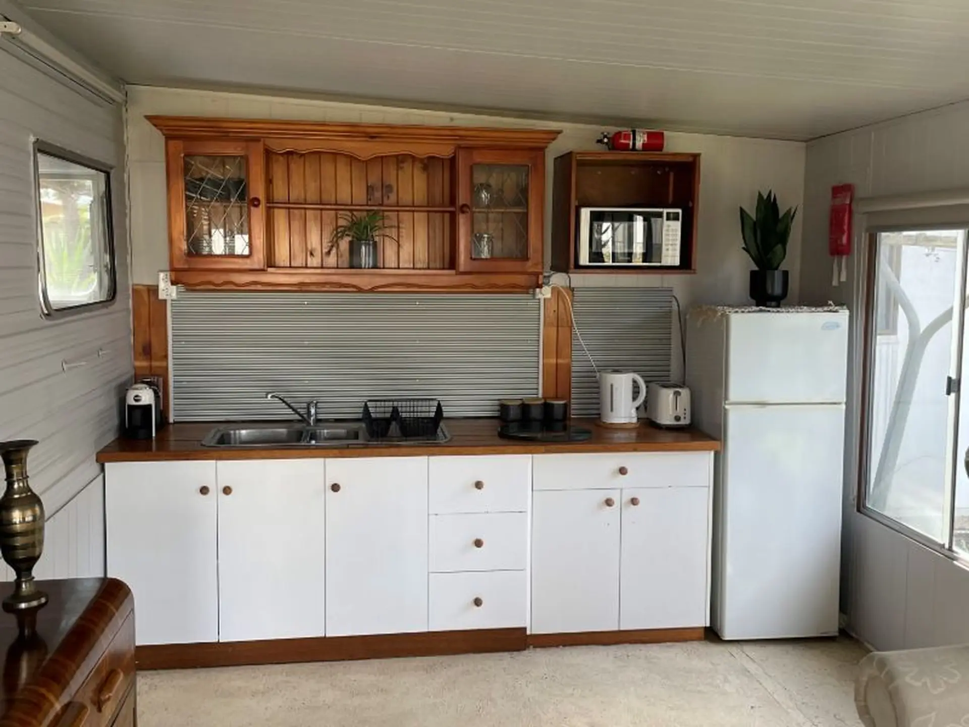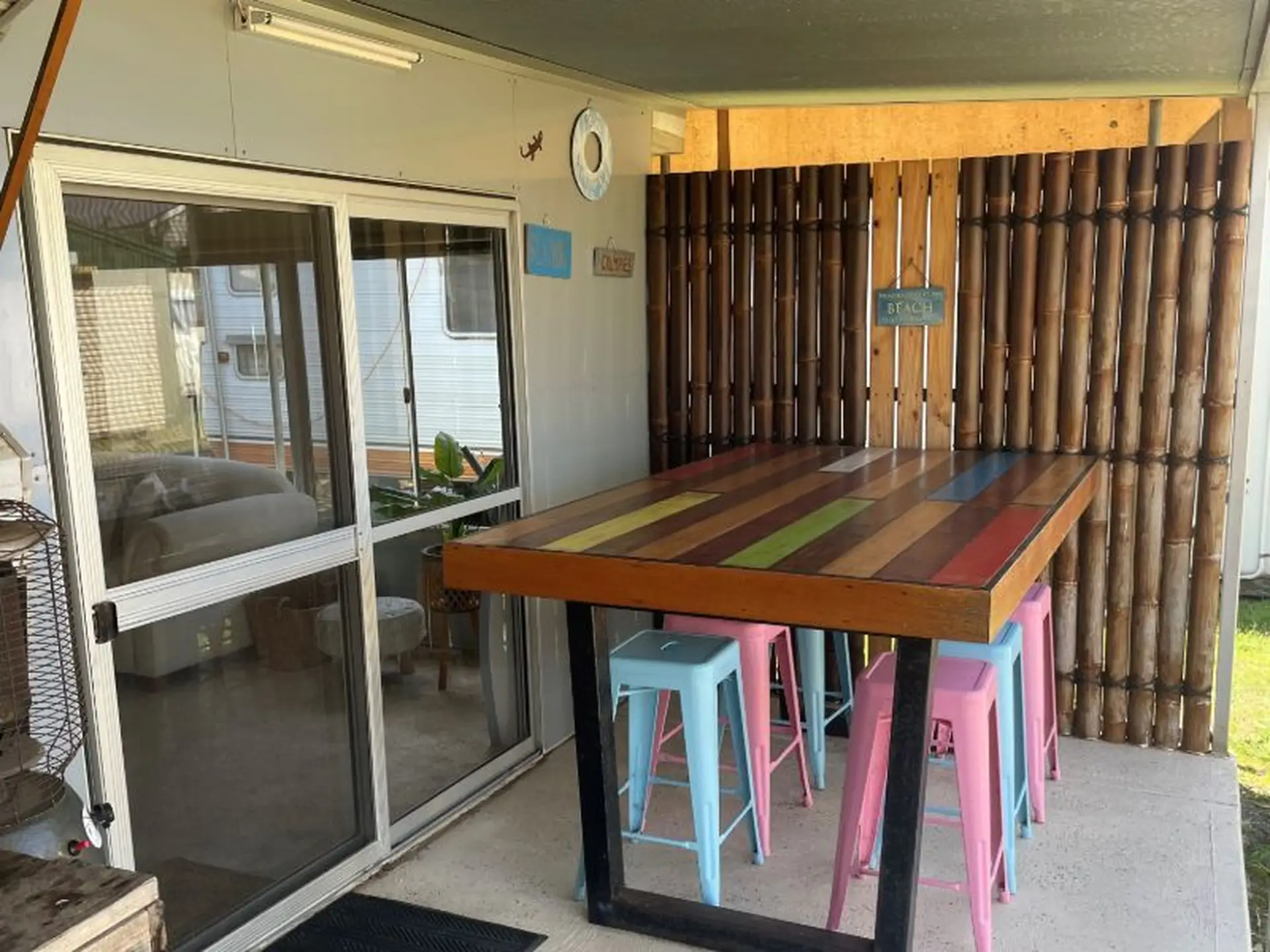 Effortless holiday living featuring stylish new kitchen with modern cabinetry and timber bench tops, Polished floorboards in van & speckled concrete floors in annex, 2 bedrooms comfortably sleeps up to 7 people. The light filled open plan living and dining area with outdoor dining setup including Weber Q, outdoor heater and built in BBQ makes cooking a breeze. Nothing to do just walk in and enjoy! Whether you’re seeking seaside serenity or a family friendly base this turnkey holiday site is ready for you. Enquire now – don’t miss out on this slice of paradise!