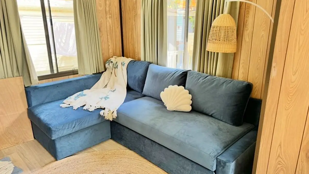 Just a few metres from the park amenities, it’s perfectly placed for easy holidays and weekend escapes. The site comes fully equipped with everything you need to walk in and start enjoying straight away — including a brand-new boucle gas-lift double bed and mattress, a brand-new pull-out sofa bed with storage, and two single beds.