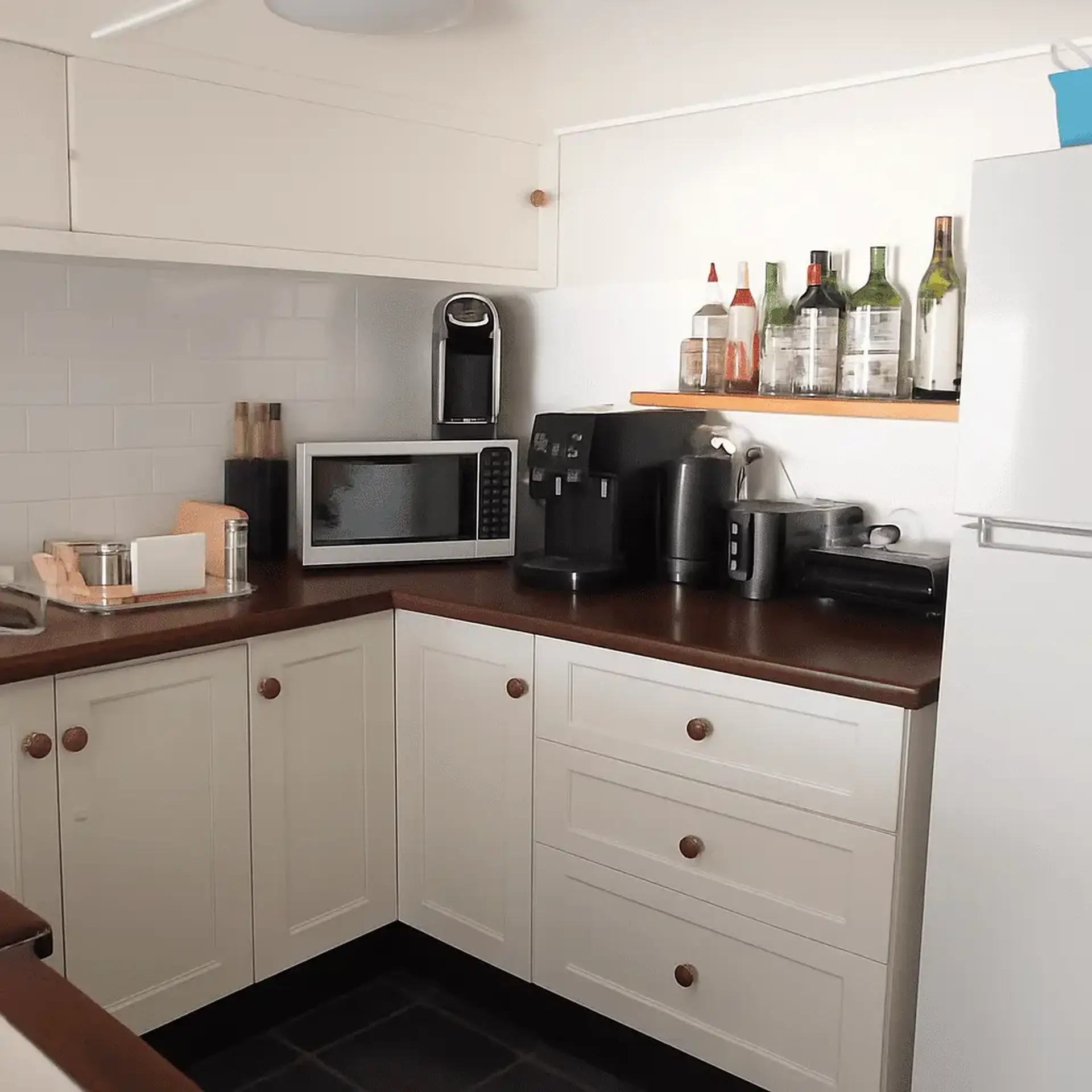 - Fully equipped kitchen with gas cooktop, oven, airfryer, microwave, toaster, and more